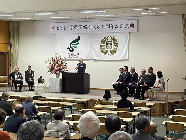 本日は、信州大学農学部創立八十周年記念式典にお集まりいただき、誠にありがとうございます。この佳節を迎えることができましたのは、ひとえに皆さまのお力添えの賜物であり、学部を代表して、深く感謝を申し上げます。